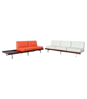 Misure in cm Altezza totale 72 Larghezza 214 Profondità 78 Altezza seduta 40 i due divani hanno stesse dimensioni.   Questo fantastico set di metà secolo incarna l’estetica distintiva del design italiano degli anni ’60 con raffinatezza e stile. Il set è composto da due divani...