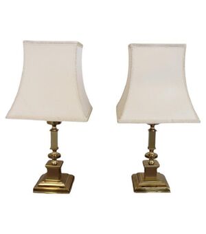 Dimensioni (cm): Altezza: 56 Larghezza: 28 Profondità: 28 Luci 1   Siamo lieti di offrire questa squisita coppia di lampade da tavolo vintage, produzione italiana anni Settanta. Realizzate in metallo di qualità e rifinite con una lussuosa doratura, queste lampade emanano un’eleganza...