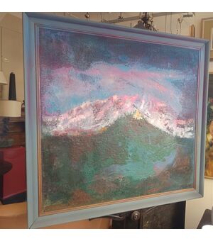 Olio su tela italiano di metà XX secolo raffigurante Costiera Amalfitana. Paesaggio costiero con veduta di cittadina che affaccia sul mare con costa che incanta con i suoi colori mediterranei. Cornice anni '70/'80 Firmato in basso a destra.  Provenienza: Italia  Epoca: 1960 Dimensioni:...