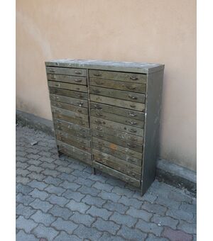 Bellissima cassettiera da negozio in ferro con cassetti in legno di epoca 900 di provenienza Italia, La cassettiere è originale è da considerarsi da restaurare ( vedi foto). Dimensioni : cm L125xP32xH125                  Prezzo trasporto 110 Euro.