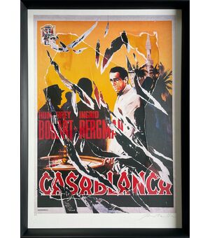 Titolo: “Casablanca” Artista: Mimmo Rotella (1918-2006) Tecnica: Seridècollage Dimensioni con cornice: H 104 x L 73 x P 7 cm Dimensioni senza cornice: 100 x 70 Firma a matita in basso a destra, stampa P. A. Mimmo Rotella, all’anagrafe Domenico Rotella, è stato un artista italiano di origini...