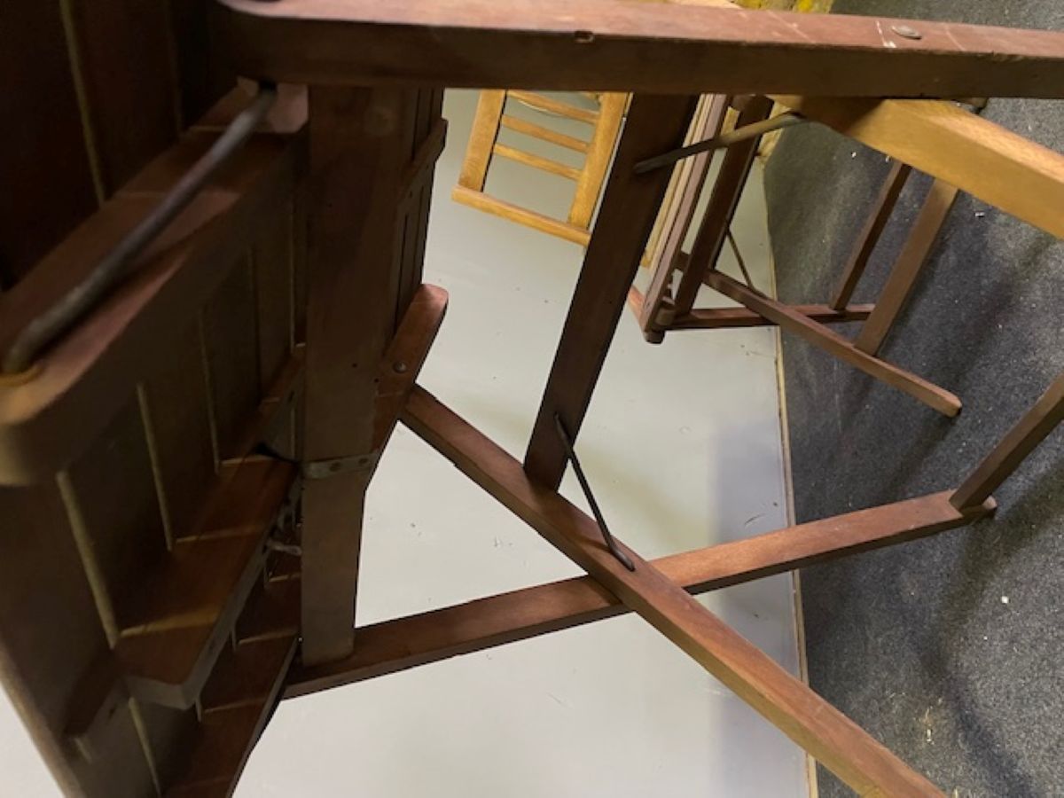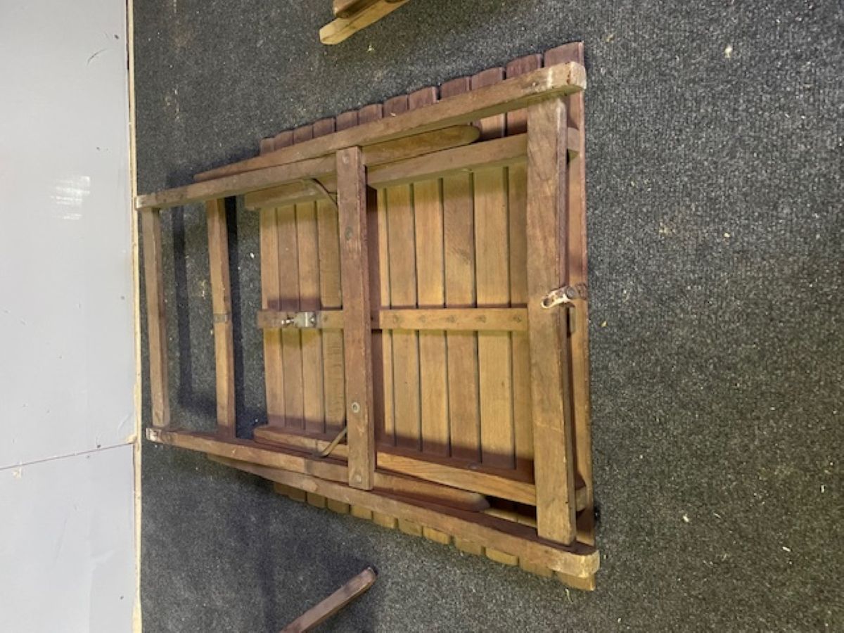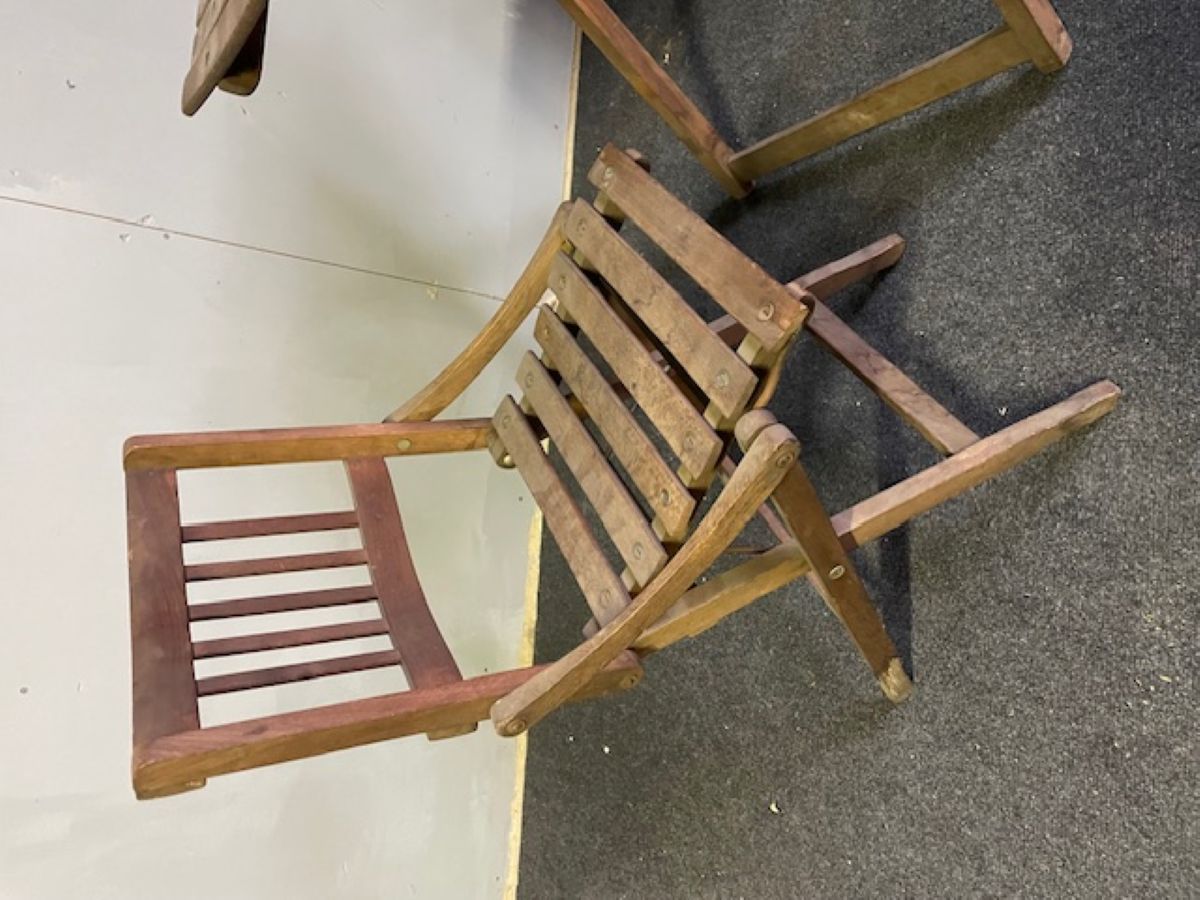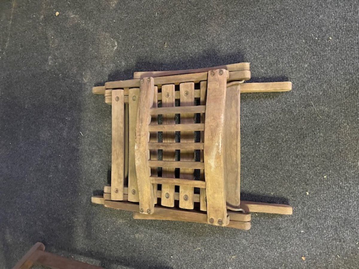 Set vintage di arredo giardino da bambini, composto da 2 sedioline e tavolino, originali del mobilificio Fratelli Reguitti di epoca metà '900. Completamente richiudibili con bellissimi meccanismi in ferro e legno in patina stupendo. Venduti in set. Misura sedia L 40 x P 37 x H 65 in cm